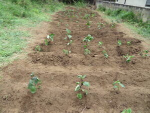 今日植付けたトマト、ピーマン、キュウリ、ナス、トウモロコシは1学期最後に収穫できそうです。自分たちの手で作った野菜の収穫が楽しみです。
