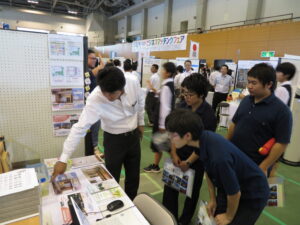 2年生の希望者32名が、9月26日ビジネスマッチングフェアに参加してきました。会場が太田市新田文化会館であったためバスを使っての移動でした。会場は他の高校の参加も重なって大変な盛り上がりでした。元々は東毛地域の企業を対象とした異業種間の交流の機会とするフェアとのことですが、ここに高校生も参加させていただき、リアルなキャリア教育の一貫として、特色ある地元の企業を知るまたとない機会になったようです。参加した生徒は単純に就職先を考えるのではなく、大人としての仕事を肌で感じていたようでした。また滞在時間は1時間15分ほどでしたが、たくさんの会社案内やミニ土産などももらって楽しそうでした。