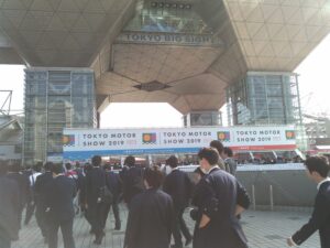 11月1日、3年ものつくりコース全75名は東京ビックサイトで開催されていめ東京モーターショーの見学に行ってきました。今年から高校生の入場料は無料になったことで、会場では他校の生徒も多くみられました。滞在時間は昼食時間も含めて2時間程度でしたので、巨大でいくつかに分かれた会場の全てを見られるものではありませんでしたが、昼食も惜しんで熱心に見学していた生徒が多数いました。なお今回のモーターショーの全期間では計130万人の来場者があったとのことでした。