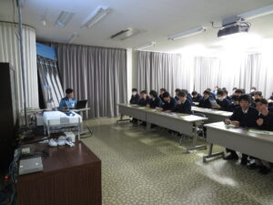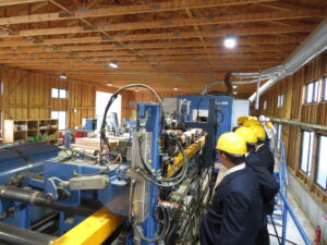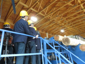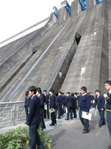 11月7日、2年ものつくりコース全87名は校外学習として渡良瀬渓谷沿いの施設を訪ね、林業と治水について現地で学んできました。ものつくりコースは農業の分野も専門的に学ぶコースですが、農業に隣接する林業という仕事について、今回はわたらせ森林組合が経営する地域材加工センターにて話を聞いてきました。センターでは最新鋭の製材機「キャンターシステム」という巨大な機械が稼働し、大きな丸太があっという間に板材に加工されていました。またセンターの方も大変熱心に林業全般について話をしてくれました。続いて草木ダムを訪ね、ここを管理する水資源機構の方からダムや治水について説明を受けました。説明の後はダム内部に設置されたエレベータに乗り、ダム下にも見学に行きました。巨大な施設に圧倒されながらも農業分野と密接に関係する治水について、生徒たちは多くのことを学ぶことができました。両施設の皆様、大変お世話になりました。