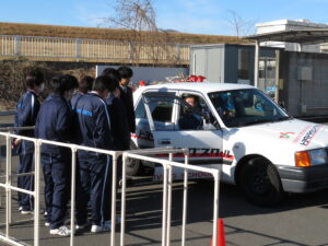 1月16日の1~4時間目、2年ものつくりコースBクラス27名は市内のトヨタドライビングスクール群馬にでかけ、フォークリフトの運転体験をしてきました。現地では3つの班に分かれて、「フォークリフトの運転体験」と「クラッチ操作の練習としてのマニュアル自動車の運転体験」、そして「重量物を手で運ぶ体験」を交互に取り組み、全員が3つのメニューを全て行うことができました。フォークリフトの運転は、ものつくりコースの生徒たちの多くに、将来的に必要となる資格のひとつだと思われます。エンストや急ブレーキなどもありましたが、普段は見られない緊張した面持ちで真剣に参加していました。しかし教官の方たちの手慣れた指導の元、なごやかな中にも真面目な取り組みができたようです。なおAクラスは先週、同様の体験をし、またCクラスは来週お伺いする予定になっています。スクールの皆様、大変お世話になりました。引き続き来週もよろしくお願いいたします。