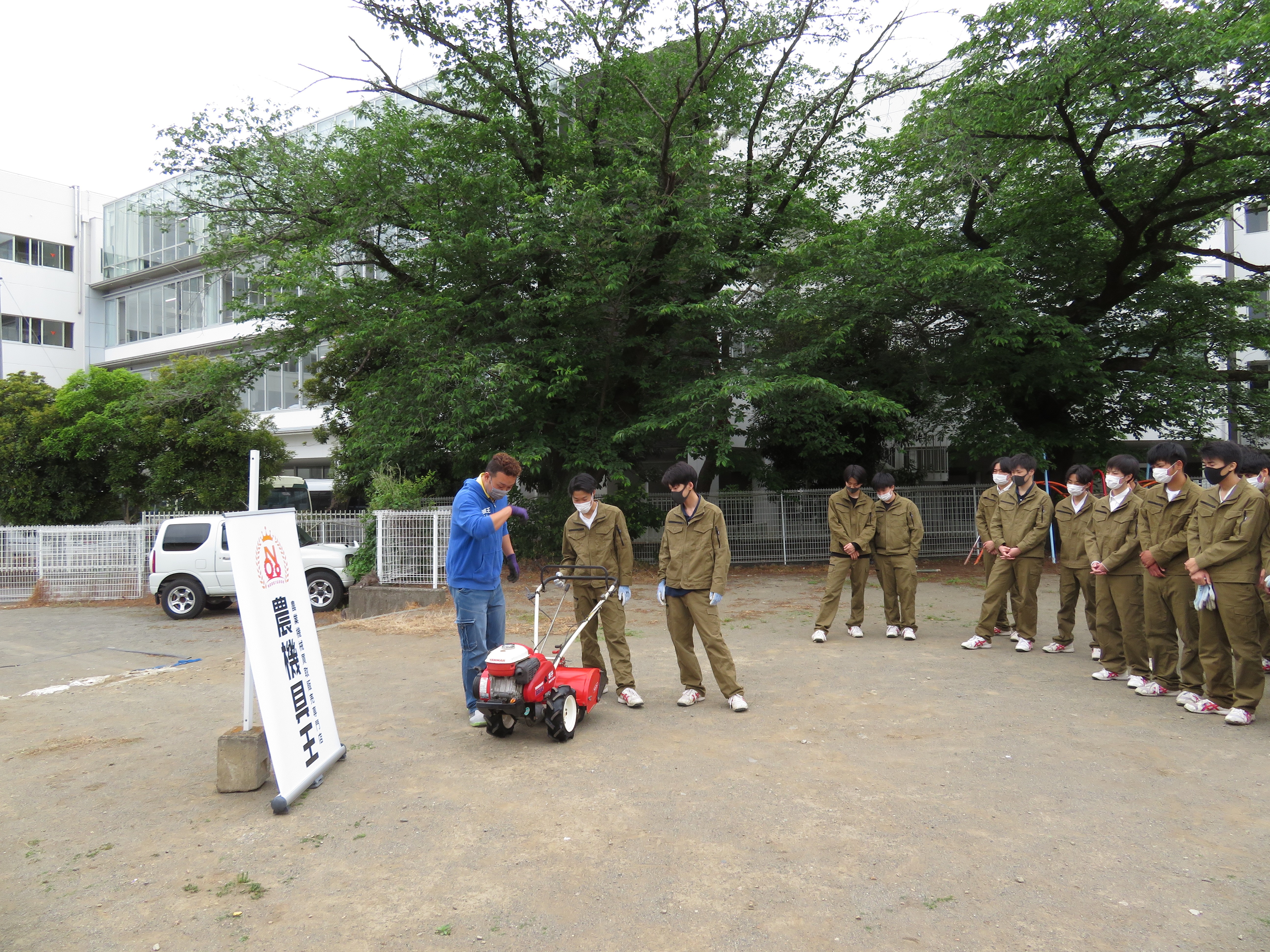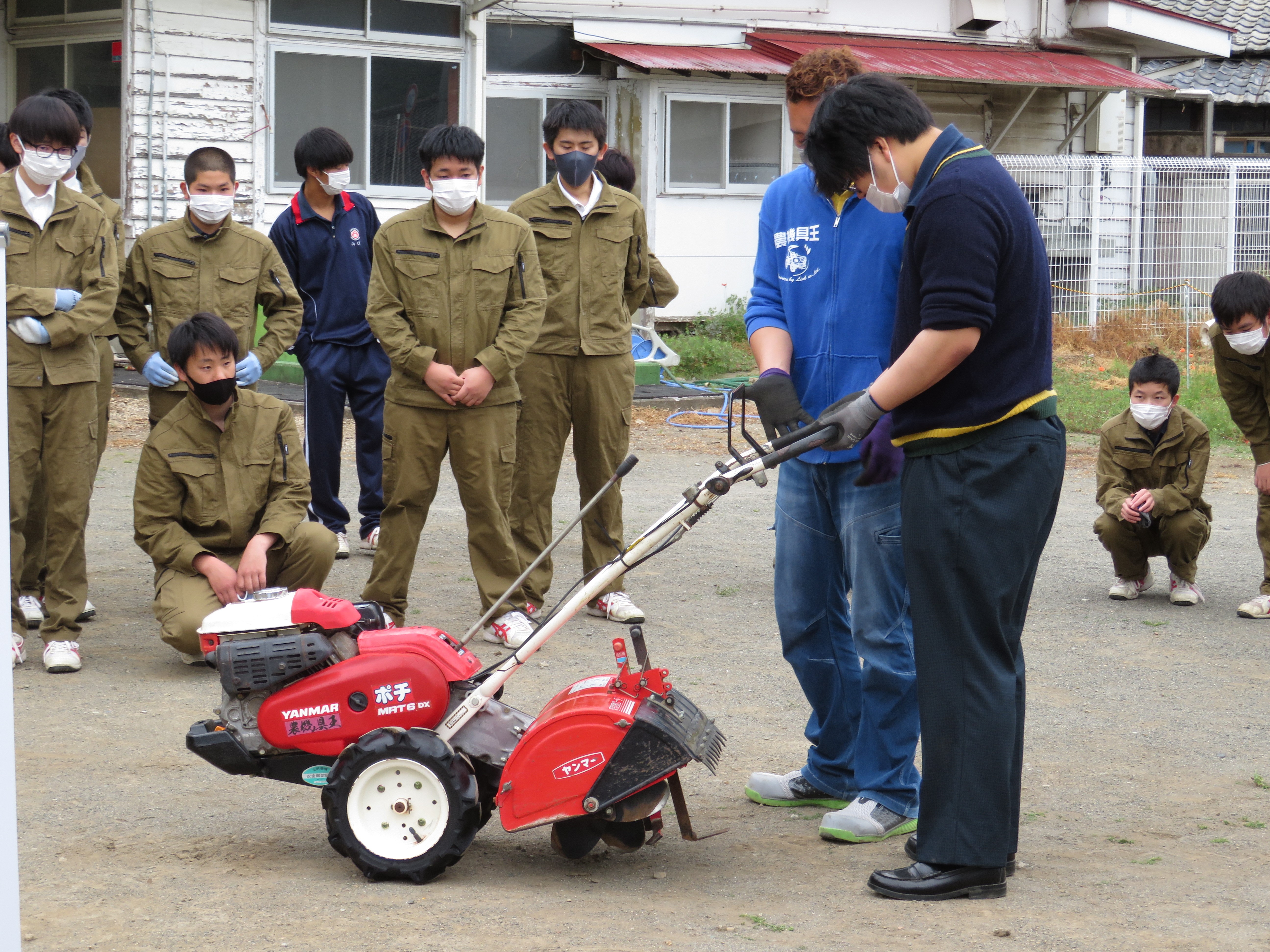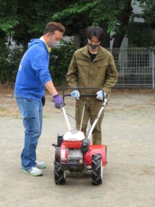 ものつくりコースのBLOG 耕運機をいただきました✨ ホーム > ブログ > コースのBLOG > ものつくりコースのBLOG > 耕運機をいただきました✨ 更新日:2021年05月25日 桐一OBであり現生徒の保護者である岡本さん(農機具王太田店店長)と支社長の藤本さんによって、耕運機を寄付していただきました! 今までは土起こしと言えば鍬とスコップでコツコツ行っていましたが、これからは耕運機の力を借りることが出来ます。 操作方法や手入れも丁寧に指導していただき、代表者が機械を操縦する姿をみんな興味津々、真剣な眼差しで見ていました。