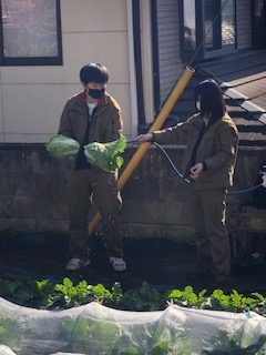 先日苗を植えた白菜やダイコン・キャベツの収穫を行いました。