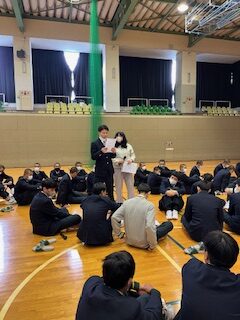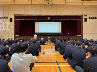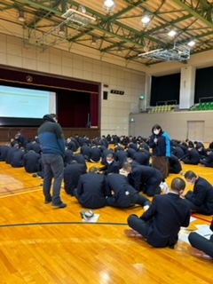 今年度3学期の進学スポーツコースの「メンタルサポート」の授業は、体育館で1年生が実施しました。