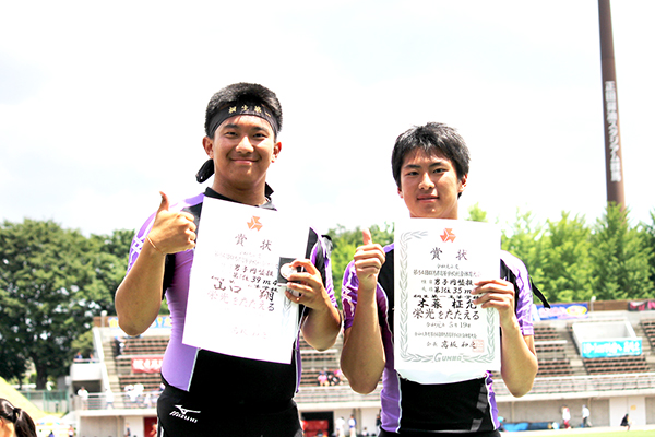 左:山口 翔君(3年生) 39m48 優勝 / 右:木暮 柾允君(3年生) 35m73 第3位