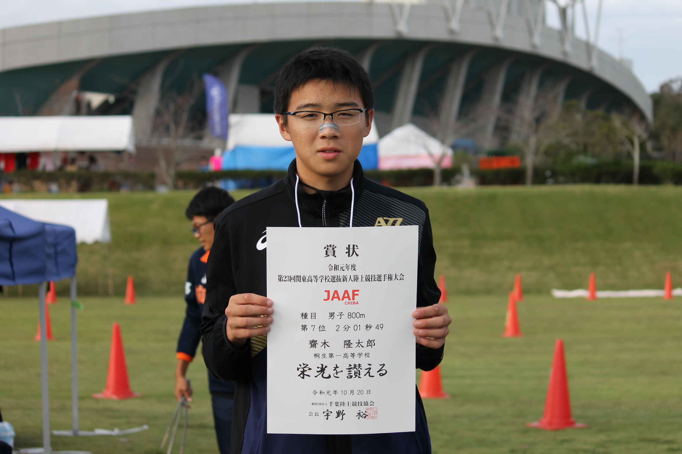 800m第7位2分01秒49(予選1分56秒54) 齋木 隆太郎(2年)