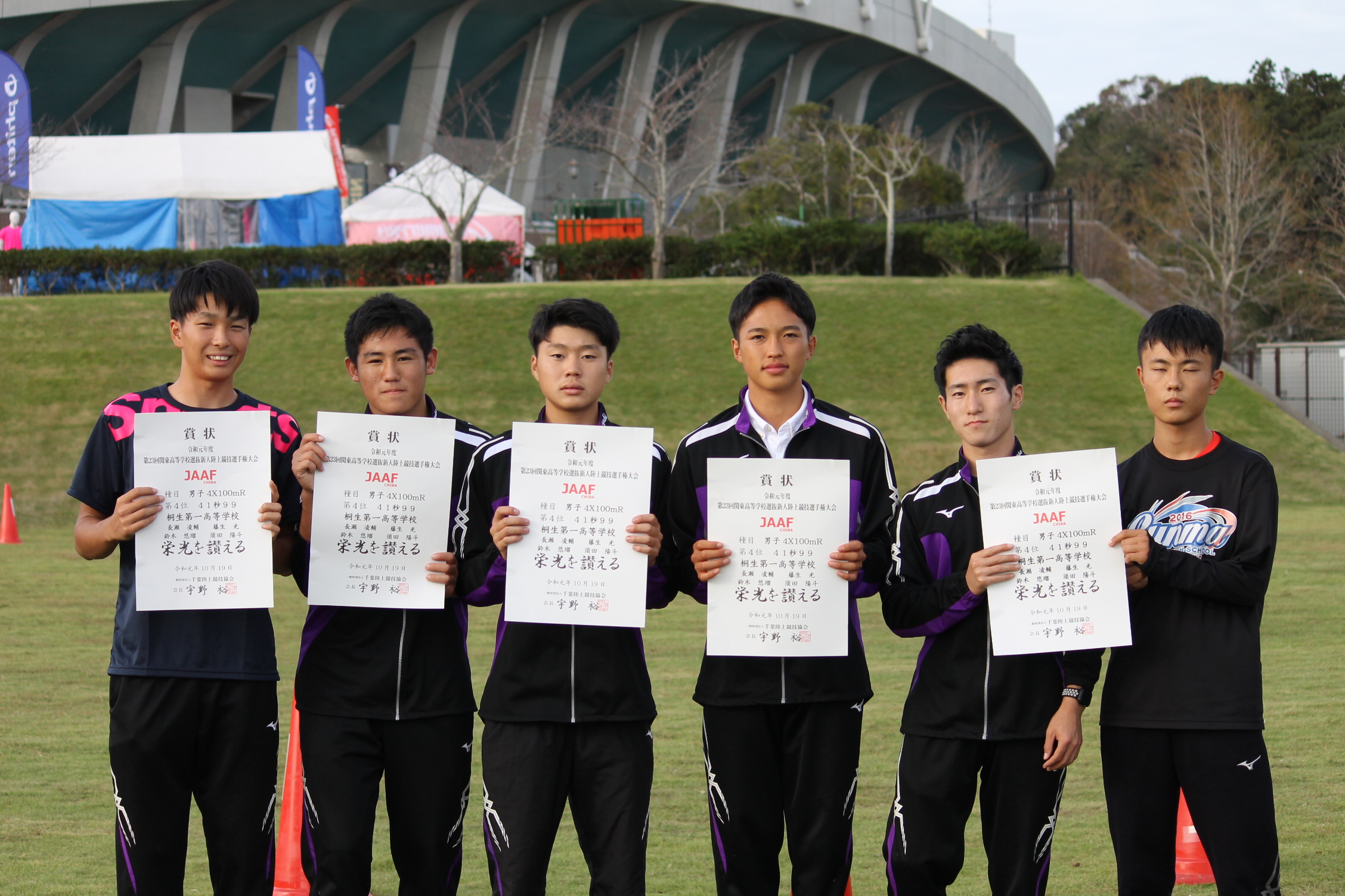 4×100mリレー第4位41秒99 左から長尾、須田、鈴木、藤生、長瀬、髙澤