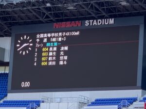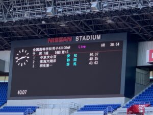 進学スポーツコースのBLOG 健闘! 10位 全国高等学校陸上競技大会4×100mリレー ホーム > ブログ > コースのBLOG > 進学スポーツコースのBLOG > 健闘! 10位 全国高等学校陸上競技大会4×100mリレー 更新日:2020年10月22日 10月16(金)から3日間「横浜日産スタジアム」で開催された全国高等学校陸上競技大会4×100mリレーに出場しました。40チーム中ランキング23位で出場しましたが40秒63の本校新記録を大幅に更新するものの第1組3着。全体10番目の記録で惜しくも決勝進出は逃してしまいました。 一人一人が全国大会という大舞台で最高の走りとバトンパスを見せてくれました。