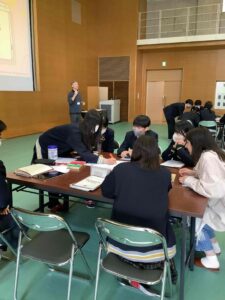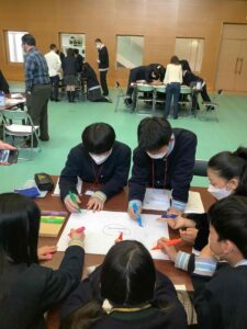 3月18日(月)から5日間、日本の大学院に通う留学生が西桐生キャンパスに来て生徒たちとオールイングリッシュで活動します。高校1年、2年生の各グループに1人ずつ留学生がつきます。最初は緊張していましたが、次第に盛り上がりを見せています。