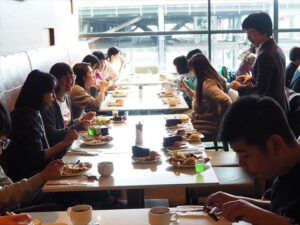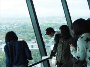 6月4日、2年生が語学研修旅行でニュージーランドに向けて出発しました。6月5日の早朝にオークランドに到着し、午前中は市内観光です。ニュージーランドのランドマークである高さおよそ300mのスカイタワーからの展望台デッキからオークランド市内を一望したのち、スカイタワーのレストランで昼食をとりました。約10時間のフライトのあとでも食欲旺盛です。