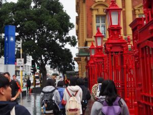 昼食後は語学学校があるオークランドからフェリーに乗って、対岸のデボンポートに行きました。マウント・ビクトリアという標高87メートルの山頂までゆっくり登って約15分、頂上からはオークランドの美しい街並みを見ることができました。