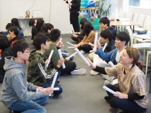 6月7日、午前中は語学学校でニュージーランド先住民であるマオリ族の文化について学びました。生徒たちは英語を話すことにだいぶ慣れて、先生の指示に従ってペアワークやグループワークに積極的に取り組む様子が見られました。また、マオリ族の伝統的な踊りや歌を学び、ティラカウというスティックを使ったマオリ族の遊びを楽しみました。