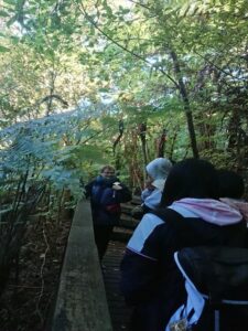 丘を登っていくほど鳥のさえずりが心地よく聞こえ、生徒たちは野鳥を見つけては写真を撮ったり、ガイドさんに英語で質問したりしていました。また、ガイドさんの説明に英語で相槌を打つなど、英語が自然に口からで出ている印象を受けました。