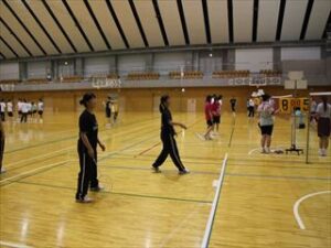午前中は、バスケットボール、バドミントンが行われ、午後は男女混合バレー、ドッヂボールが行われました。クラスTシャツやタオルを作成してクラスの絆を深めます。学年、優勝目指して頑張りました。