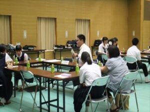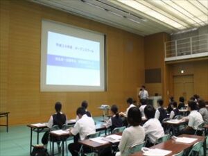 今回は、全体説明の後、生徒との対談、英語・数学・国語・理科の模擬授業、高校生による校内ガイドツアー、高校生・卒業生による座談会が行われました。中学生・保護者の皆様、桐一の「特進」の雰囲気を感じて頂けたでしょうか。