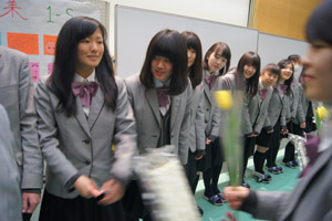 特別進学コースのBLOG 中高一貫コース特進コース 卒業生を送る会を行いました。 ホーム > ブログ > コースのBLOG > 特別進学コースのBLOG > 中高一貫コース特進コース 卒業生を送る会を行いました。 更新日:2015年03月04日 卒業式終了後、第3学舎に戻った卒業生へ、中学、高校1・2年生から「卒業生を送る会」が行われました。中学生の合唱、中高ダンス部によるパフォーマンスやクラス単位の歌やダンス、コントなどが披露されました。卒業生は発表のクオリティの高さに驚いていました。 特別進学コースの生徒は国公立大学の中期、後期日程を控えています。全日程が終了するまであと少し。気分を一新して最後まで駆け抜けます。