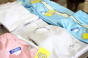 女子はピンク、男子は水色です。実際の福祉の現場にあわせた実習着の色になっています。