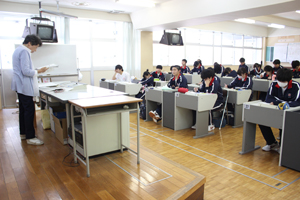 20日(木)、2年福祉教養系ではまずこれから皆さんが着用する実習着の採寸を行いました。