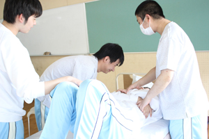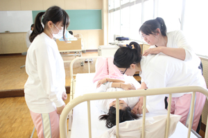 人に触れながらの介助実習は初めてで、生徒達も苦戦しながら一生懸命頑張りました。