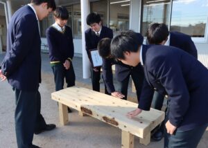 新設「教育支援センター」に真新しい手作りベンチ寄贈 桐一高ものつくりコース2年生「くつろいでほしい」2024.12.20