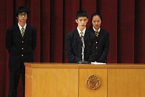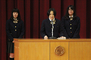 生徒会役員任命式は12月3日(月)、創立記念式典の後に行われます。