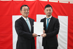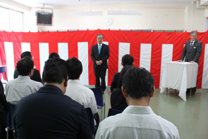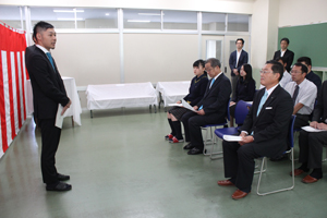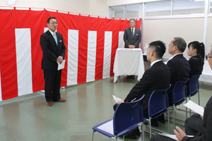 8月8日(水)、寄贈品受領セレモニーを行いました。桐生信用金庫 理事長 津久井真澄様よりご挨拶をいただきました。