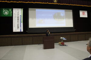 講演会後、お礼の言葉と花束贈呈。