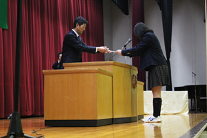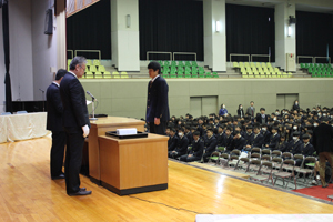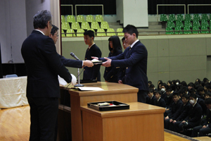 その後、検定や資格取得等に頑張った生徒たちへの表彰式と謝恩式、同窓会入会式が行われました。表彰式を見ていた1、2年生には大変良い刺激になったようです。
