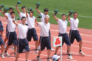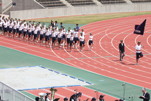 進学スポーツコースの陸上部と野球部中心に、立派に入場行進を務めました。