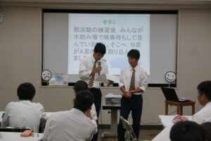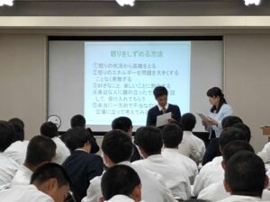 毎回養護教諭が講師となり実施していますが、進学スポーツコースの先生方もいつも大変協力的にT.Tとして参加して下さっています。