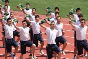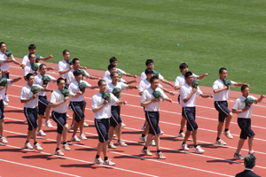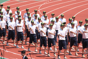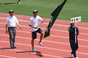 開会式、陸上部と野球部員中心に、立派に入場行進を務めました。