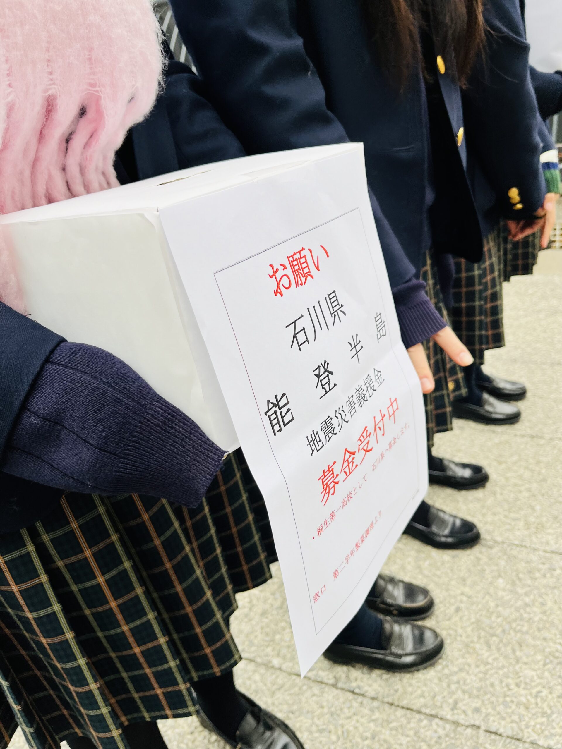 桐生第一高校 製菓衛生師コース&調理科は能登半島地震災害義援金活動を1月15日よりはじめました。修学旅行で和倉温泉『加賀屋』様にお世話になる予定でした、...
