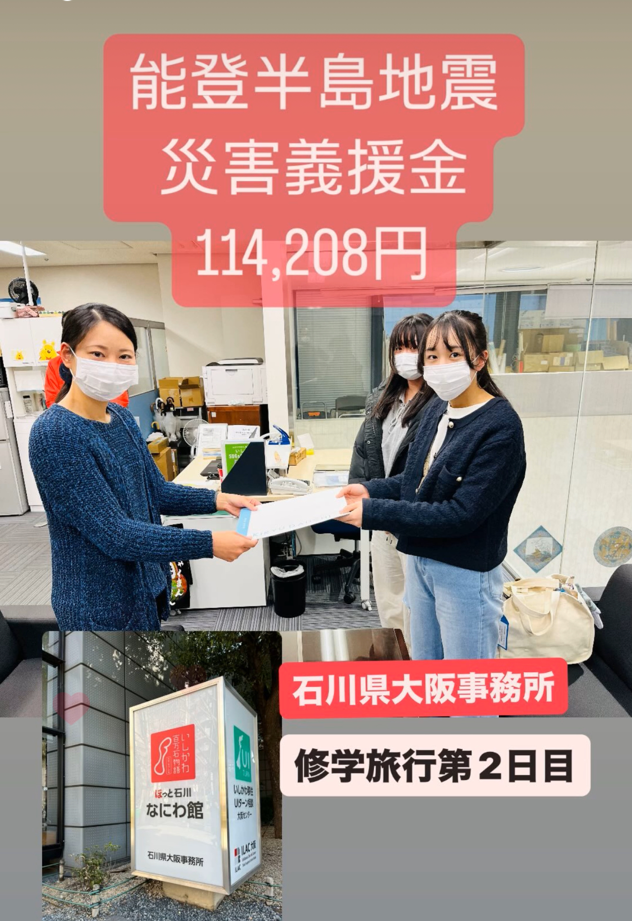 能登半島地震災害 義援金活動報告② 現在 お預かりした義援金総額 101,707円となりました。 毎朝 活動している生徒へ 心温まる義援金ありがとうございます。...