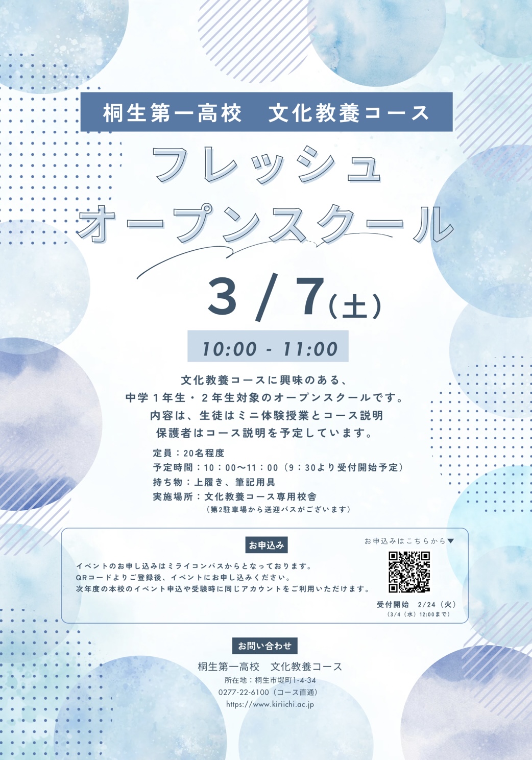 △▼△▼文化教養コースフレッシュオープンスクールのご案内△▼△▼