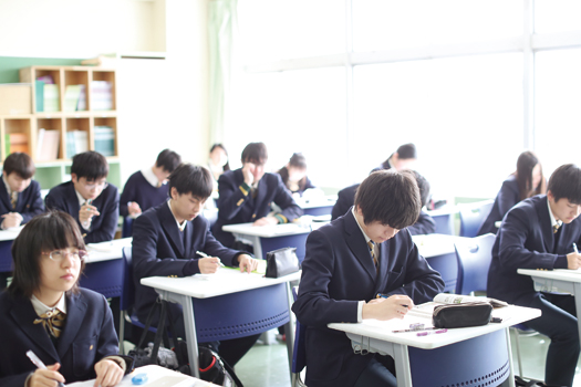 勉強と部活を両立させ、4年制大学の現役合格を目指す系。2年次より文理系に分かれ、国公立大学への合格を第一目標として学習します。また、英語検定・漢字検定・数学検定2級合格のサポートを行っています。このように基礎から応用まで、きめ細やかで多様な学びを提供しているのが進学系の特徴です。