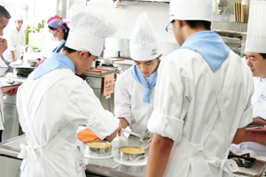 製菓衛生師コース・調理科の生徒を中心とし各種コンクールへの参加を目標とした活動を行っています。製菓実習の復習をしたり技能の向上にも努めています。