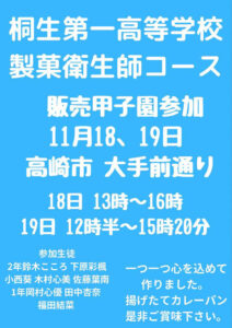 製菓衛生師コースで今まで授業で製作した商品を販売させていただきます。