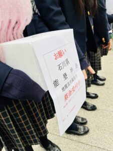 能登半島地震災害義援金活動が本日より 毎朝 正門で始まりました。