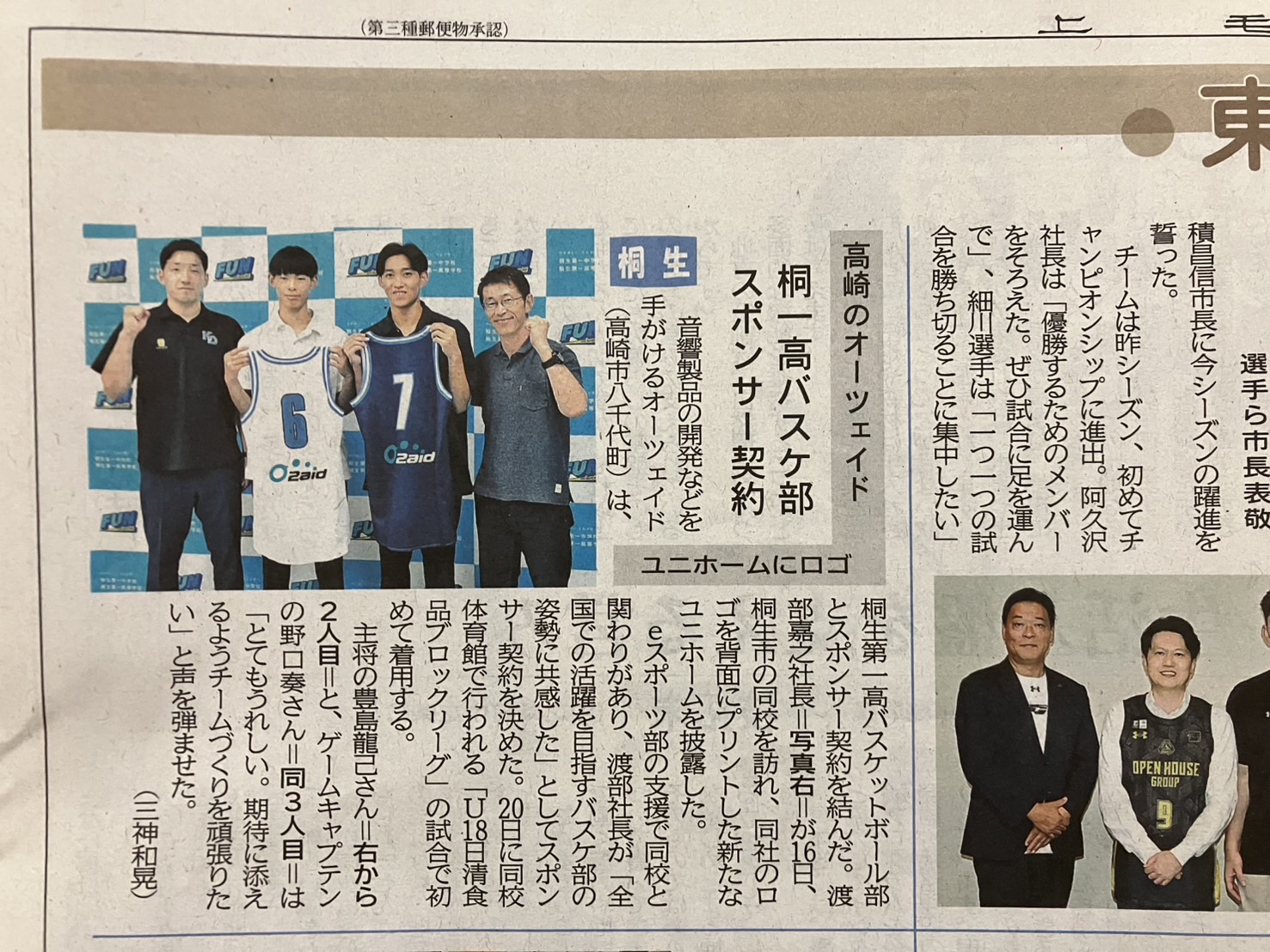 男子バスケットボール部とスポンサー契約をしているオーツェイド様のロゴマークの入ったユニフォームが完成しました。日清食品ブロックリーグで使用させていただきます!