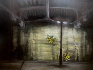 私が通学中に毎日見る風景を描きました。この何気ない日々にある様々な風景がいつも見ているはずなのに、ふとした瞬間にはまるで違うものに見えると言う自分の成長を題材にしました。油絵は中学の時以来でしたが、久しぶりにすることができて良かったです。技法や画材の使い方などはじめは忘れていましたが、絵には最後までたくさん思いを込められたなと思います。