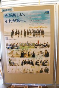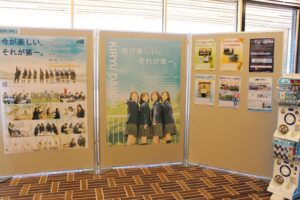 会場となった1階多目的スペースでは、各高校の「特色ある取り組み」や「地域とのつながり」をテーマにした展示が並びました。