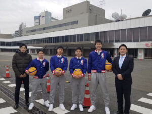 ※ 写真:渋谷のNHKスタジオにて(2018年12月22日 集合写真右から:近藤3×3バスケットボール部GM・佐藤選手・大都選手・松山選手・萩原選手・岡田3×3バスケットボール部HC)